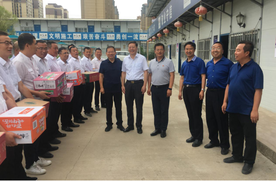 8月9日上午,延安大學校長張金鎖,副校長楊偉宏,校辦主任劉述進、工會主席白澤生一行到延安大學新校區(qū)項目慰問一線職工,陜建十三公司董事長、總經(jīng)理卜國平一同慰問,延大校辦、工會及新校區(qū)辦公室相關負責人參加慰問活動。