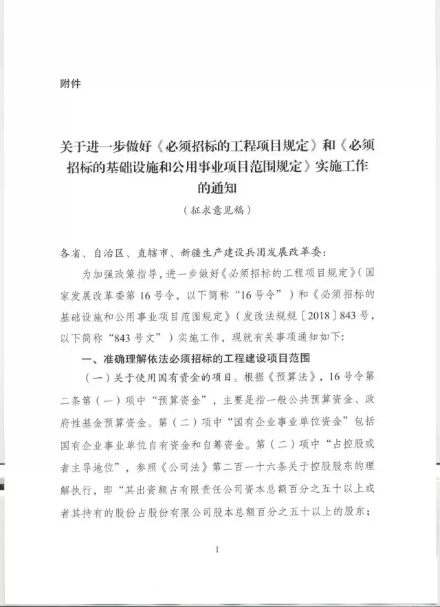 近日,國(guó)家發(fā)改委發(fā)布《關(guān)于進(jìn)一步做好<必須招標(biāo)的工程項(xiàng)目規(guī)定>和<必須招標(biāo)的基礎(chǔ)設(shè)施和公用事業(yè)項(xiàng)目規(guī)定>實(shí)施工作的通知》(征求意見(jiàn)稿)?!锻ㄖ返闹饕獌?nèi)容圍繞“準(zhǔn)確理解依法必須招標(biāo)的工程建設(shè)項(xiàng)目范圍”、“規(guī)范限額以下工程建設(shè)項(xiàng)目的采購(gòu)”和“嚴(yán)格執(zhí)行依法必須招標(biāo)制度”展開(kāi),其中對(duì)于16號(hào)令、843號(hào)令中的相關(guān)規(guī)定和名詞進(jìn)行了進(jìn)一步的解釋。