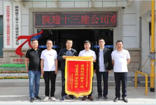5月26日, 延安水務投資建設有限責任公司工程部部長侯海濤一行,為陜建十三建公司送來一面寫著“管理到位 服務一流 優(yōu)質高效 國企擔當 ”的錦旗,并對十三建公司優(yōu)質高效服務給予了高度評價。