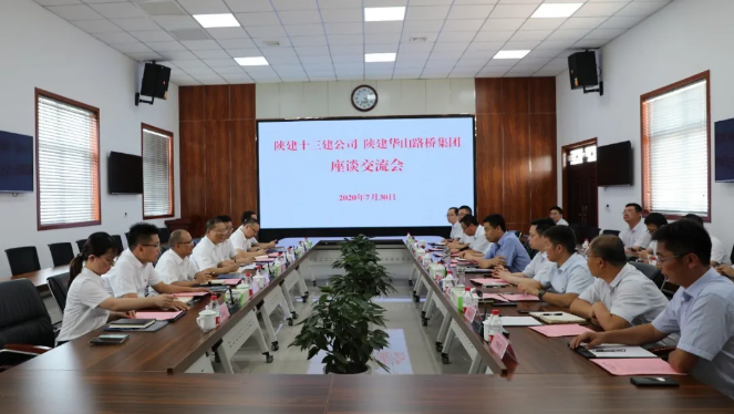 華山路橋集團副總經(jīng)理方曉明、張華,總會計師李軍,陜建十三建公司副總經(jīng)理鐘卓寶、總工程師王弘起、總會計師王磊,副總經(jīng)理景益濤及雙方相關部室負責人等參加座談。