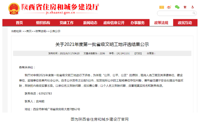 陜西省住房和城鄉(xiāng)建設(shè)廳公布了
